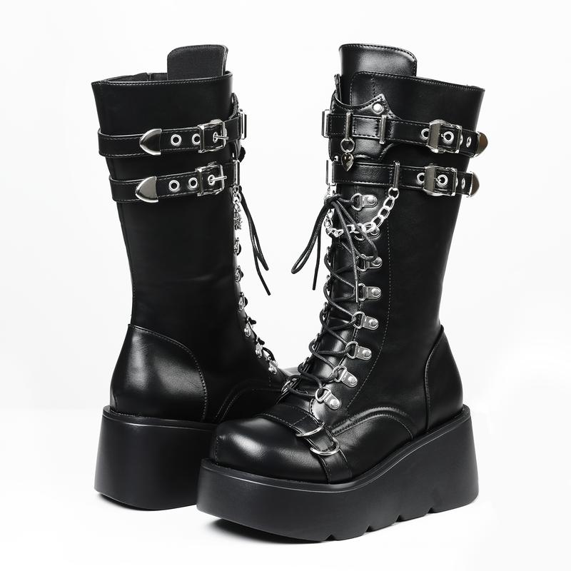 Introducing the Women’s Platform Knee High Gothic Style Boots—because who needs a fairy godmother when you have the perfect pair of shoes? Step into these knee-loving, spine-tingling wonders and instantly feel like the lead in a gothic novel, minus the tragic love story. With a 3.15-inch wedge heel, you’ll gain a few inches and a lot of sass as you strut your stuff through town—think of it as an instant confidence boost, no magic wand required!